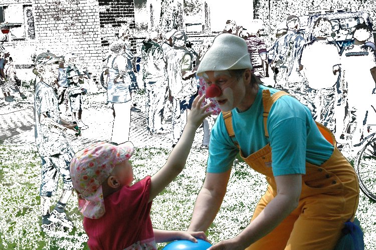 neben ihrer Clownspielkunst zu einer Athmosphäre bei, in der man sich spontan wohl und verstanden